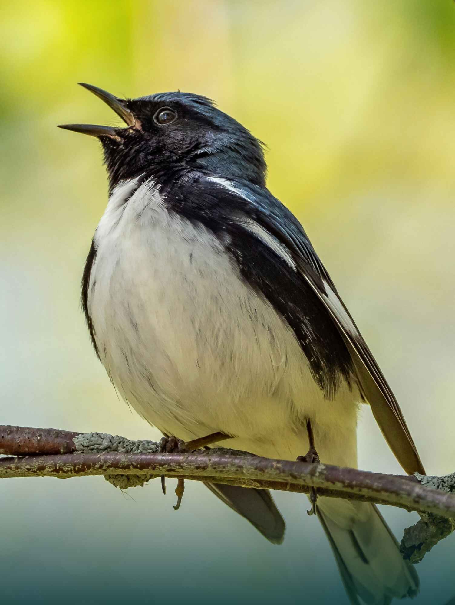Feathers blue with throat of black, Warbler moves along the track. In the woods, you flit and play, Singing sweetly all the way. Hidden high in leaves so green, Warbler’s song is rarely seen. But your voice will always rise, Filling air beneath the skies.